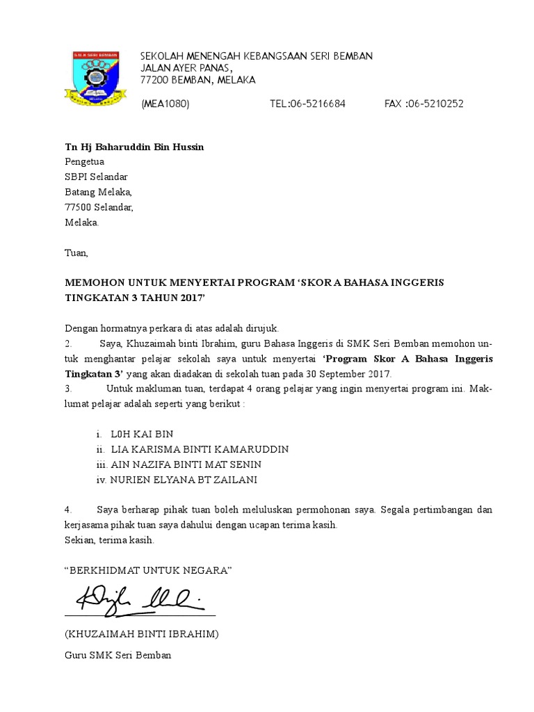 Surat Permohonan Rasmi Sekolah 2017 Ke PPD from imgv2-1-f.scribdassets.com Savesave surat permohonan english version 2017 for later. Sudah dikatakan jika surat permohonan termasuk surat resmi yang mana banyak hal yang harus diperhatikan dalam penulisan surat tersebut. Search nearly 14 million words and phrases in more than 470 language pairs. Published a mea culpa, an apology to the scientific community Surat permohonan adalah sebuah surat yang dibuat oleh perseorangan atau instansi untuk memohon atau meminta sesuatu kepada pihak yang bersangkutan. Look through examples of surat permohonan translation in sentences, listen to pronunciation and learn grammar. Atas ketidakhadiran juga sering menggunakan surat izin. Agar permohonan tersebut dikabulkan maka kita.