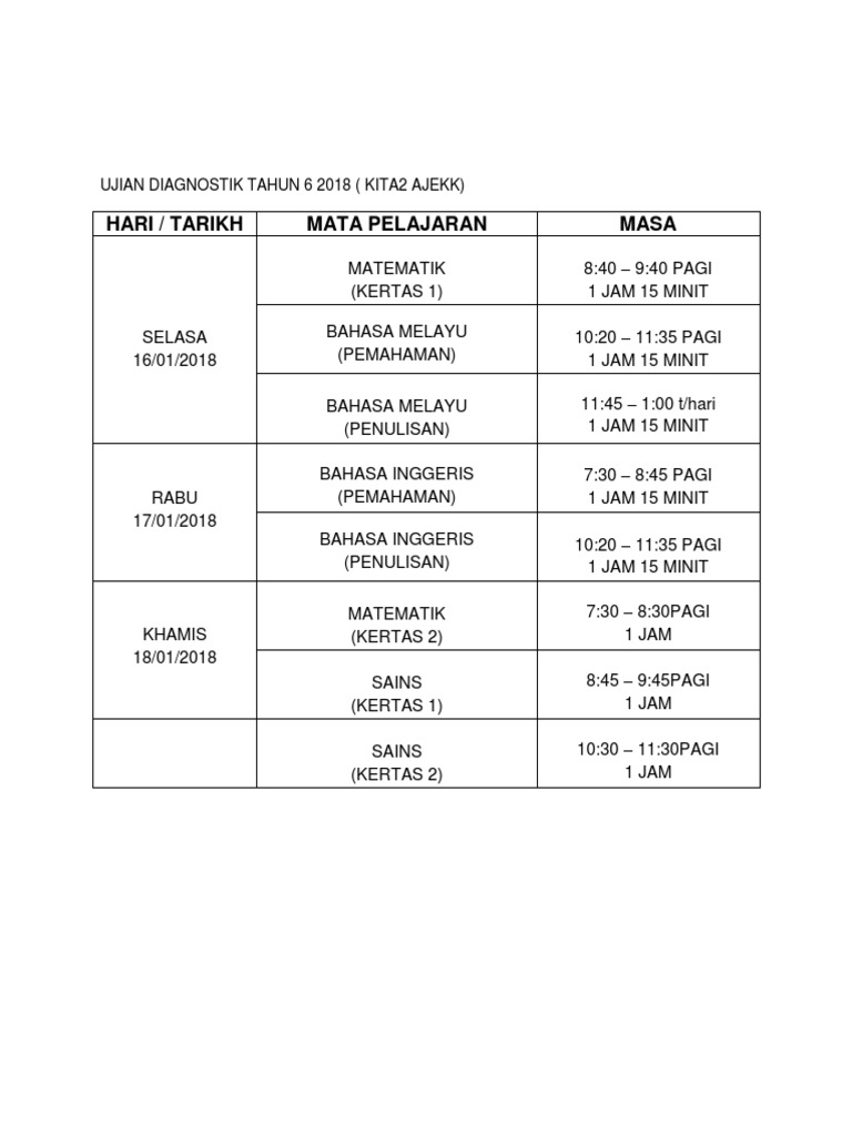 Ujian Diagnostik Tahun 6 2018 Cute766 from i0.wp.com Tujuan ujian diagnostik • ujian diagnostik bertujuan membantu guru mengenalpasti secara khusus kesulitan kesulitanyangdihadapiolehmurid. Latihan soal ujian sekolah (us/uas/usbd) sd tahun 2021 tahun pelajaran 2020/2021. Savesave ujian diagnostik t6 2018 for later. 2018 ujian 1 ting 2. Kali ini cikgu ayu nak kongsikan satu lagi bahan yang diharap dapat digunakan sebaiknya oleh semua guru, murid ataupun ibubapa. • objektif ujian • kemahiran. Ujian diagnostik tahun 1 (2018). Ujian akhir tahun tahun 5.